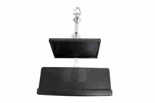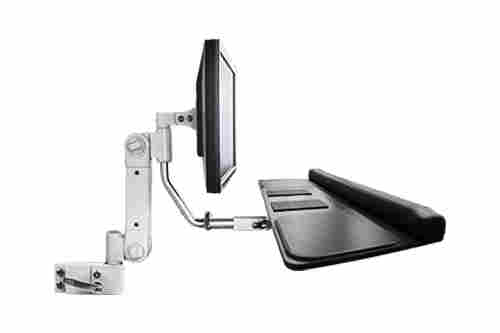 The adjustable arm provides vertical adjustment from vertical (up) to horizontal (down) and full left / right pivot. The LCD Display tilts forward / back and can rotate portrait / landscape. The keyboard support bracket provides independent tilt and pivot functions. Combined, the monitor and keyboard can be positioned to meet most any application.